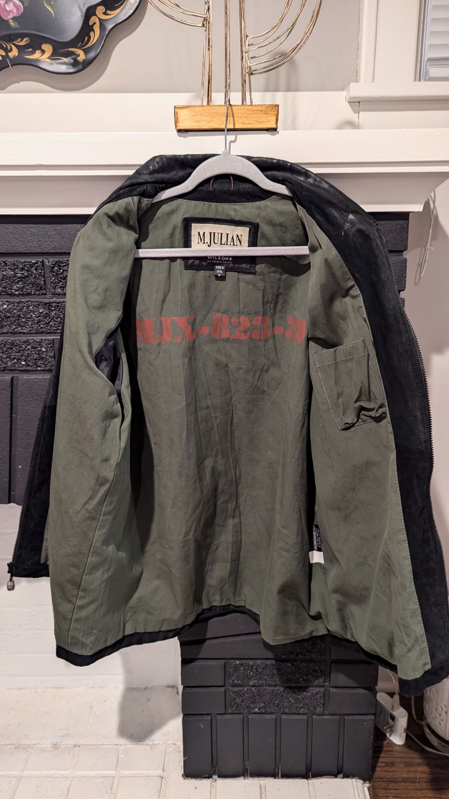 Vintage Wilson's M. Julian Suede Leather Jacket Men's Medium Black Drawstring Bungee sleeves