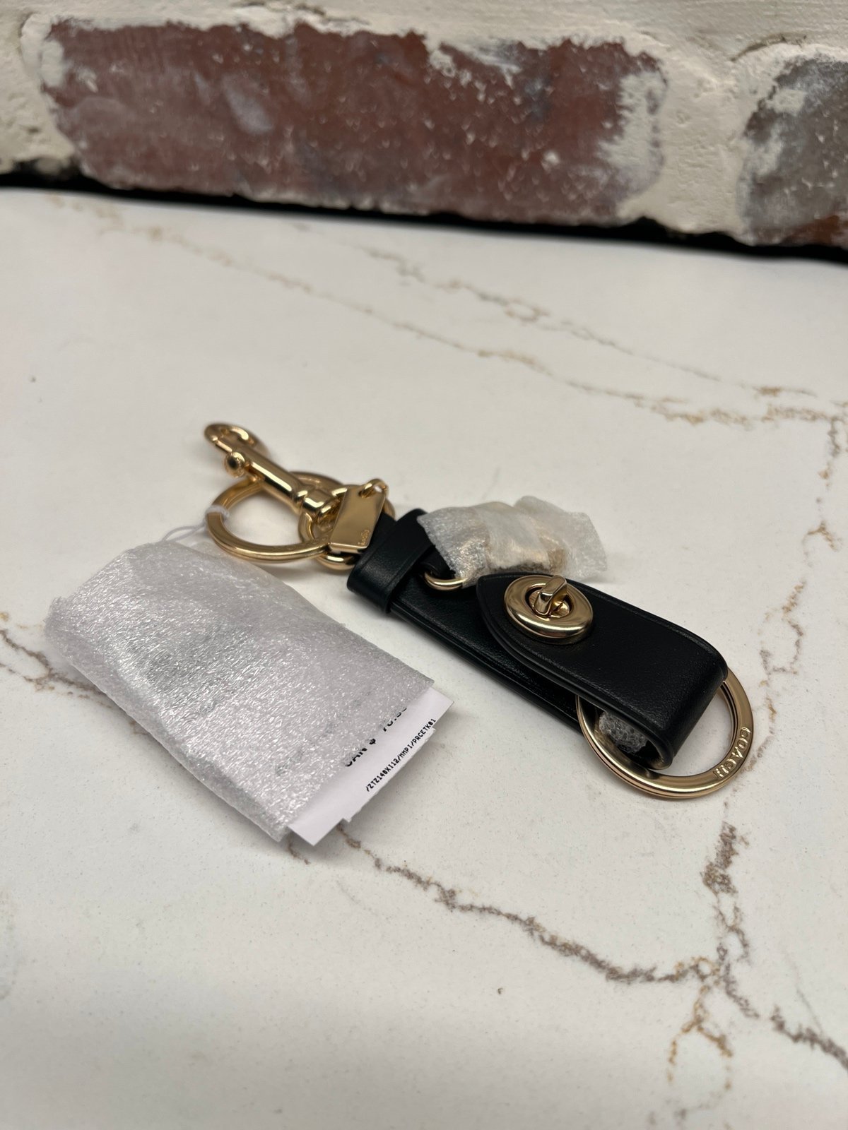 Brand new with tags and in original protective packaging, a Coach trigger snap bag, charm, black color with gold
